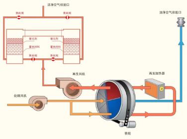 RCO(Regenerative Catalytic Oxidation)原理是:第一步是催化劑對VOC分子的吸附,提高了反應(yīng)物的濃度;第二步是催化氧化階段降低反應(yīng)的活化能,提高了反應(yīng)速率。借助催化劑可使有機廢氣在較低的起燃溫度下,發(fā)生無氧燃燒,分解成CO2和H2O放出大量的熱,與直接燃燒相比,具有起燃溫度低,能耗小的特點,某些情況下達到起燃溫度后無需外界供熱,反應(yīng)溫度在250-400℃。