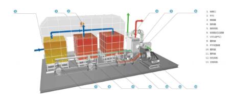 RTO(Regenerative Thermal Oxidizer,蓄熱室氧化器)原理是把有機廢氣加熱到760 ℃以上使廢氣中的VOC氧化分解成CO2和H2O。氧化產(chǎn)生的高溫氣體流經(jīng)特制的陶瓷蓄熱體,使陶瓷體升溫而“蓄熱”,此蓄熱用于預(yù)熱后續(xù)進入的有機廢氣,從而節(jié)省廢氣升溫的燃料消耗。RTO技術(shù)適用于處理中低濃度(100-3500mg/m3)廢氣,分解效率為95%-99%。